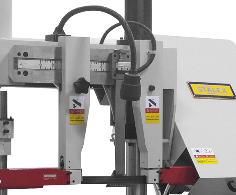 Двухстоечные ленточнопильные станки имеют 2 вертикальные стойки (колонны) большого диаметра по которой вертикально перемещается горизонтальная пильная рама.